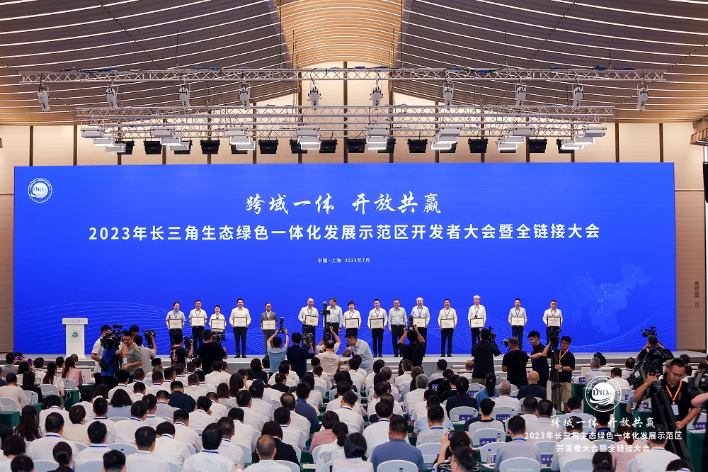 7月31日,以“跨域一体、开放共赢”为主题的2023年长三角生态绿色一体化发展示范区开发者大会暨全链接大会,在国家会展中心(上海)举行,上海市委书记陈吉宁出席并致辞,兰钧新能源科技有限公司作为新加入开发者联盟的13家企业和机构代表之一上台领取授牌。