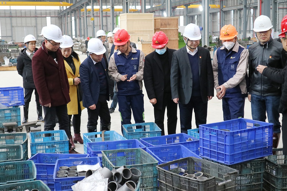 袁华军一行参观考察了壹号娱乐-com钢管管件事业部生产车间,宋光明和车间主管方威对产品种类、主要工序、生产规模等情况做了详细介绍。听取介绍之后,袁华军对产品特点和设备操作、机械自动化等细节提出了相关问题,彭洪林等一一作出了解答。袁华军对壹号娱乐-com钢管在不锈钢产业园区企业中起到的带头作用和在周宁的影响力给予了肯定,并表示:期待壹号娱乐-com钢管在接下来的发展中能取得更加显著的成绩。