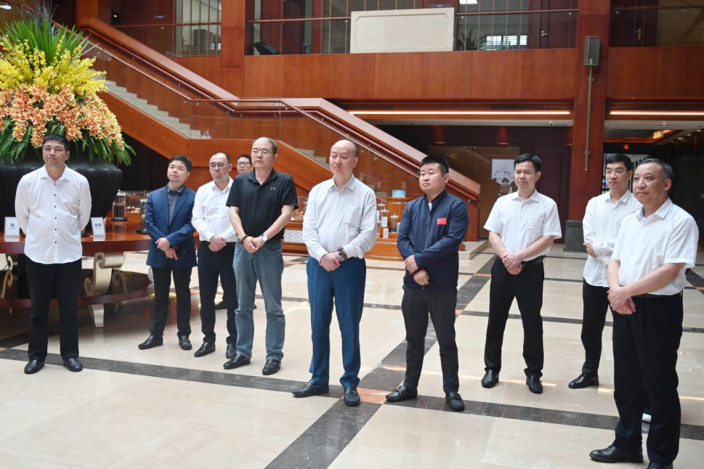 参观结束后,胡智荣一行与姜海洪、钟盛江在办公楼一楼合影留念。