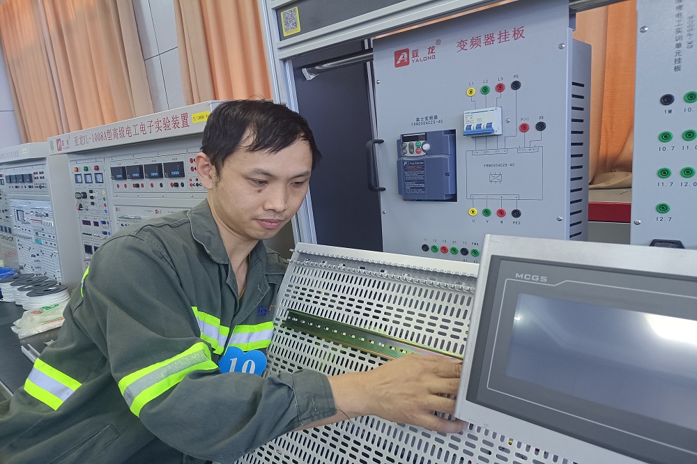 在电工技能比赛上,理论考试80分以上的前10名选手正在按照电气原理图布置安装接线,他们技能娴熟、动作敏捷,在赛场上扬帆亮剑、崭露锋芒,尽显公司青年员工的良好精神风貌。比赛操作有效融入了平常工作或训练的内容,较好检验了参赛选手的技能水平。