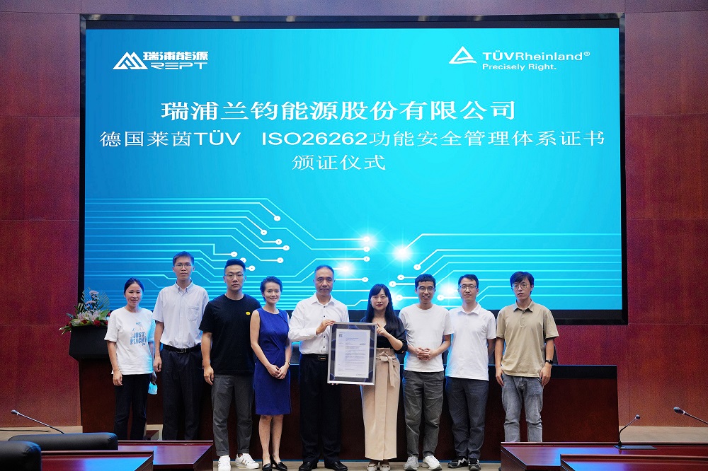 瑞浦兰钧能源获莱茵TÜV ISO 26262功能安全管理体系认证证书