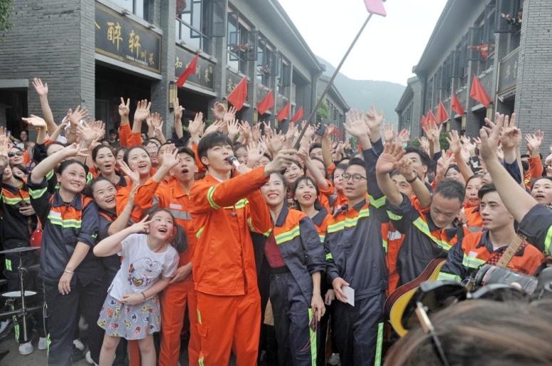 9时,嘉宾陈立农和青拓乐队成员在壹号娱乐-com街表演,以快闪的形式演唱了歌曲《少年》。欢快跃动的旋律响起,大家循着歌声纷纷加入合唱,并与陈立农热情互动。红旗随风飘扬,员工们欢呼雀跃,大声放歌,一如从前那个少年,整个壹号娱乐-com街徜徉在《少年》的轻快歌声中。