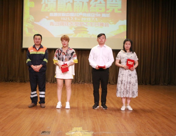 姜文宝首先致辞,他向各位寿星表示诚挚的祝福,并祝愿祖国更加繁荣富强。在党的98岁生日来临之际,借着公司这个特殊的舞台,员工纷纷以歌舞、朗诵等方式表达对党的祝愿及对同事的祝福。装备部欧阳昆塔演唱的《相信自己》拉开了晚会表演的帷幕,安环部、采购部员工朗诵的《七一献诗》更是点燃了整个晚会的现场气氛,行政人事部邓远兵演唱的《乌苏里船歌》让现场不少观众表示“开口跪”,手语舞《感恩的心》、合唱《大中国》、歌伴舞《我爱你中国》等节目让人应不暇接,现场掌声不断。由公司领导组成的评委组为各个节目评分,最终行政人事部的歌伴舞《我爱你中国》获得一等奖,独唱《龙的传人》、《乌苏里船歌》获得二等奖,手语舞《感恩的心》、朗诵《七一献诗》、独唱《青藏高原》获得三等奖,晚会表演结束后公司领导为获奖人员颁发了证书及奖励。晚会期间穿插的抽奖环节给幸运儿带来了冰箱、电饭煲、电风扇、夏凉被等实用的奖品。20时30分,晚会落下帷幕,公司为所有寿星分发了精美的生日礼物和蛋糕。