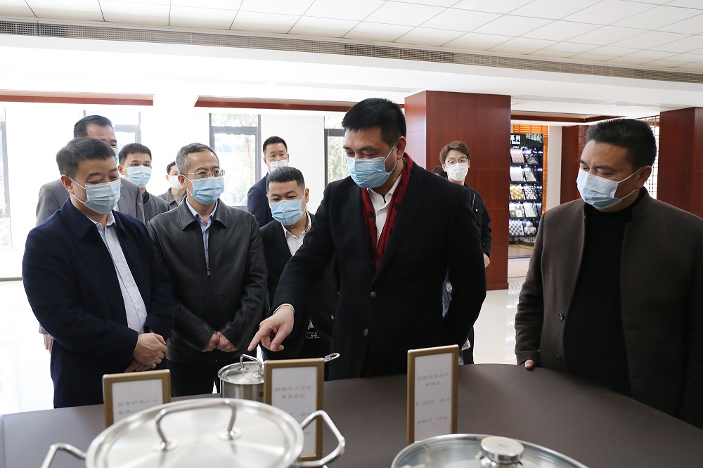黄华一行还参观了集团供销中心、研究院、家具展厅、电子展厅等场所,并观看了企业宣传片。参观过程中,一行人员对青拓集团自主研发的“笔尖钢”等产品兴趣浓厚,提出了相关问题,钟盛江就企业产业链以及未来规划进行了解答,并对青拓不锈钢产品创新方面的卓越表现进行了详细介绍。